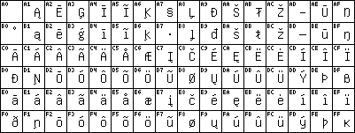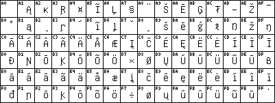 Latin4 introduced letters for Estonian (et), the Baltic languages Latvian (lv, Lettish) and Lithuanian (lt), Greenlandic (kl) and Lappish. Note that Latvian requires the cedilla on the =BB U+0123 LATIN SMALL LETTER G WITH CEDILLA to jump on top. Latin4 was followed by Latin6.